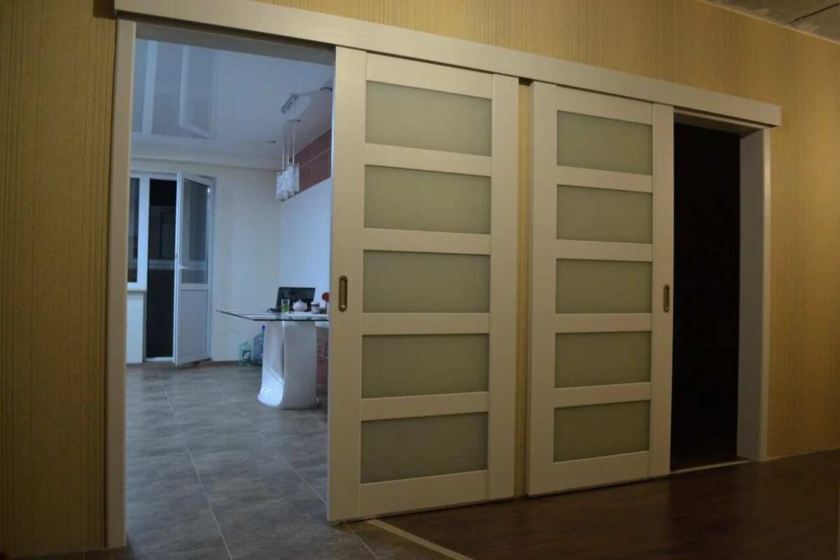 4. Для небольших помещений с малым количеством естественного освещения прекрасно подойдут раздвижные двери из прозрачного или матового стекла или пластика. Помимо дополнительного освещения, такие межкомнатные двери в интерьере создают эффект лёгкости и практичности. Ухаживать за такими дверями проще простого – в отличие от деревянных, они нуждаются только в периодической очистке от пыли и брызг.